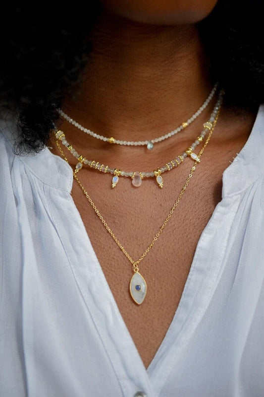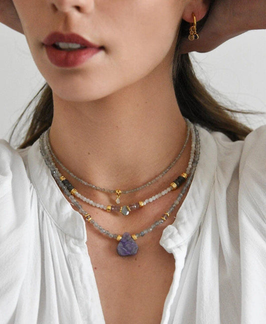 Moonstone, Amethyst and Labradorite Necklace "Divine Protection"