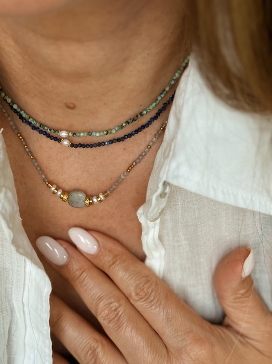 Royal blue lapis lazuli gives self-confidence, improves communication, intuition, helps to convey thoughts more clearly when speaking, reduces stress. This mineral belongs to the third eye chakra, so thanks to it it will be easier to feel the voice of the subconscious, to hear what intuition is saying. This stone is especially suitable for audiences speaking to people, lawyers, psychologists, coaches .