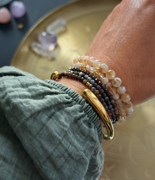 Kaip nešioti apyrankes? Kaskart dėdamasi apyrankę ant kairės rankos pagalvok, kokios energijos šiuo metu trūksta, ką norėtum gauti. Kai dediesi ant dešinės rankos - susitelk, ką nori duoti kitiems, kokia energija nori dalintis.