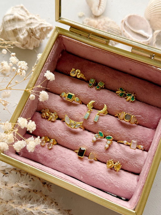 Žiedas su citrinu, topazu ir prenitu