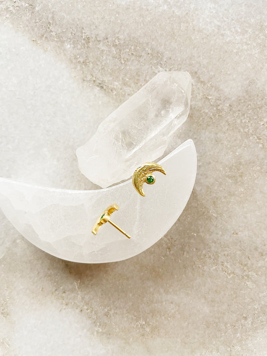 Auskarai su žaliojo onikso kristalais “Mėnuliai”