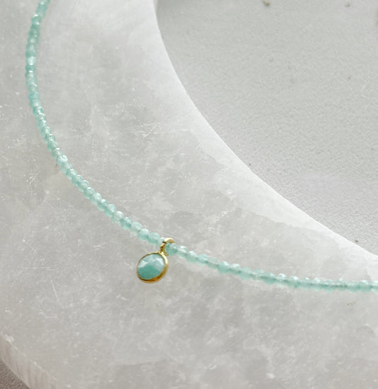 Amazonito kaklo vėrinys "Lašelis"