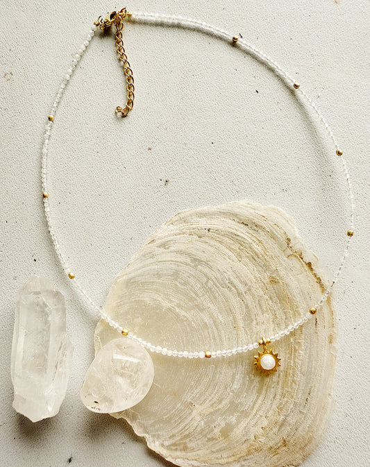 Mėnulio akmens kaklo papuošalas “Pilnatis”