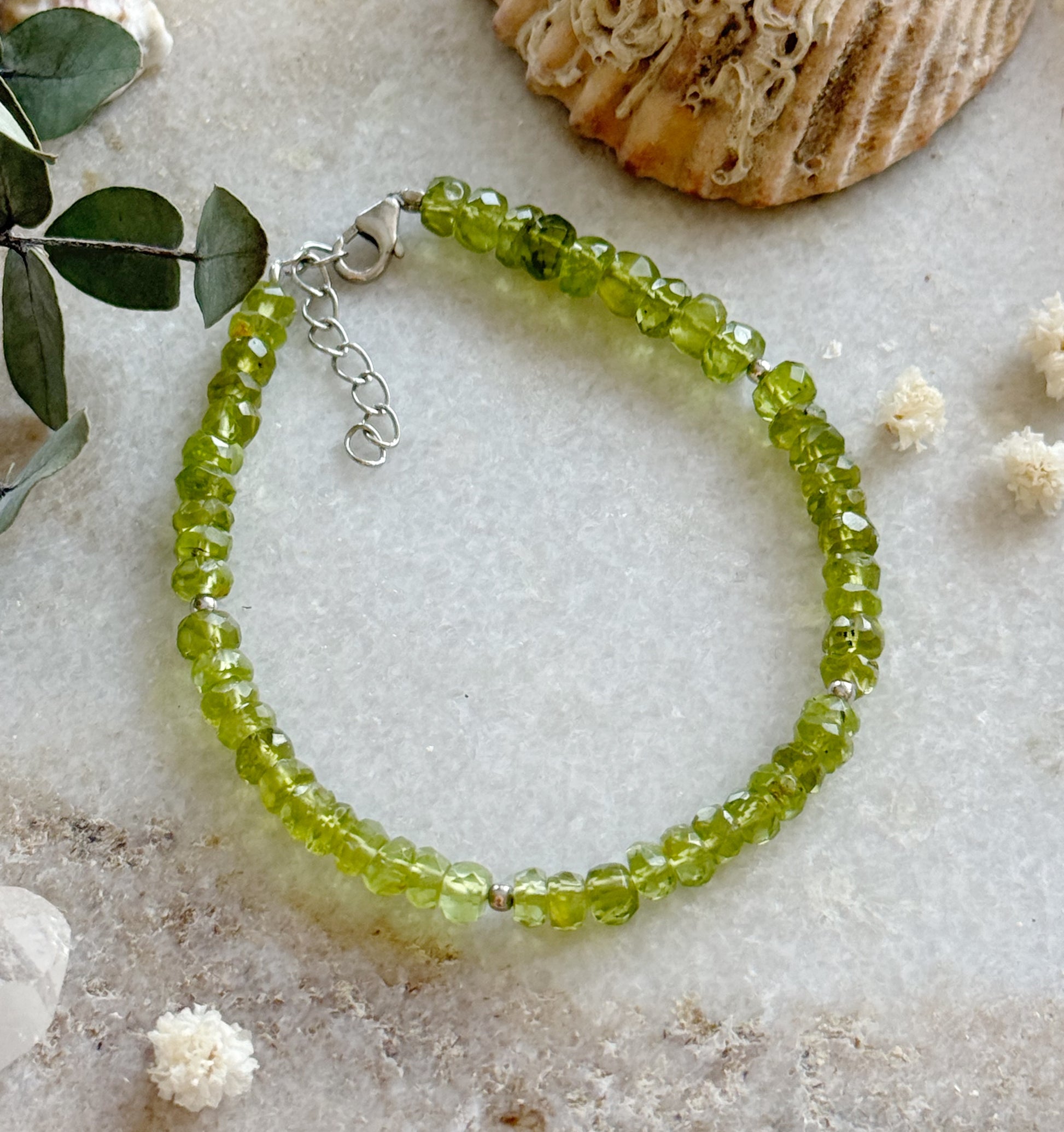 Peridoto kristalų apyrankė