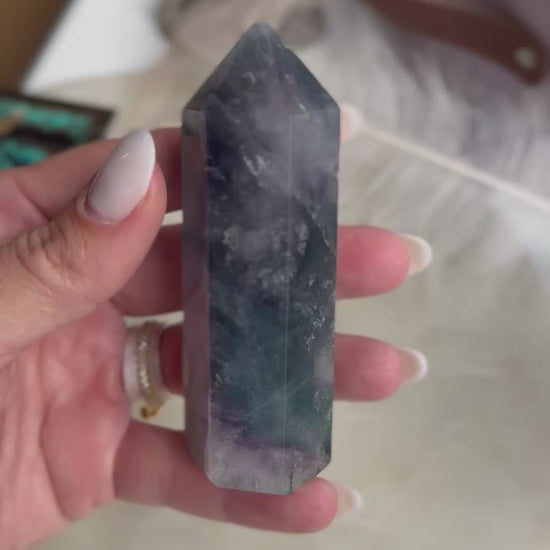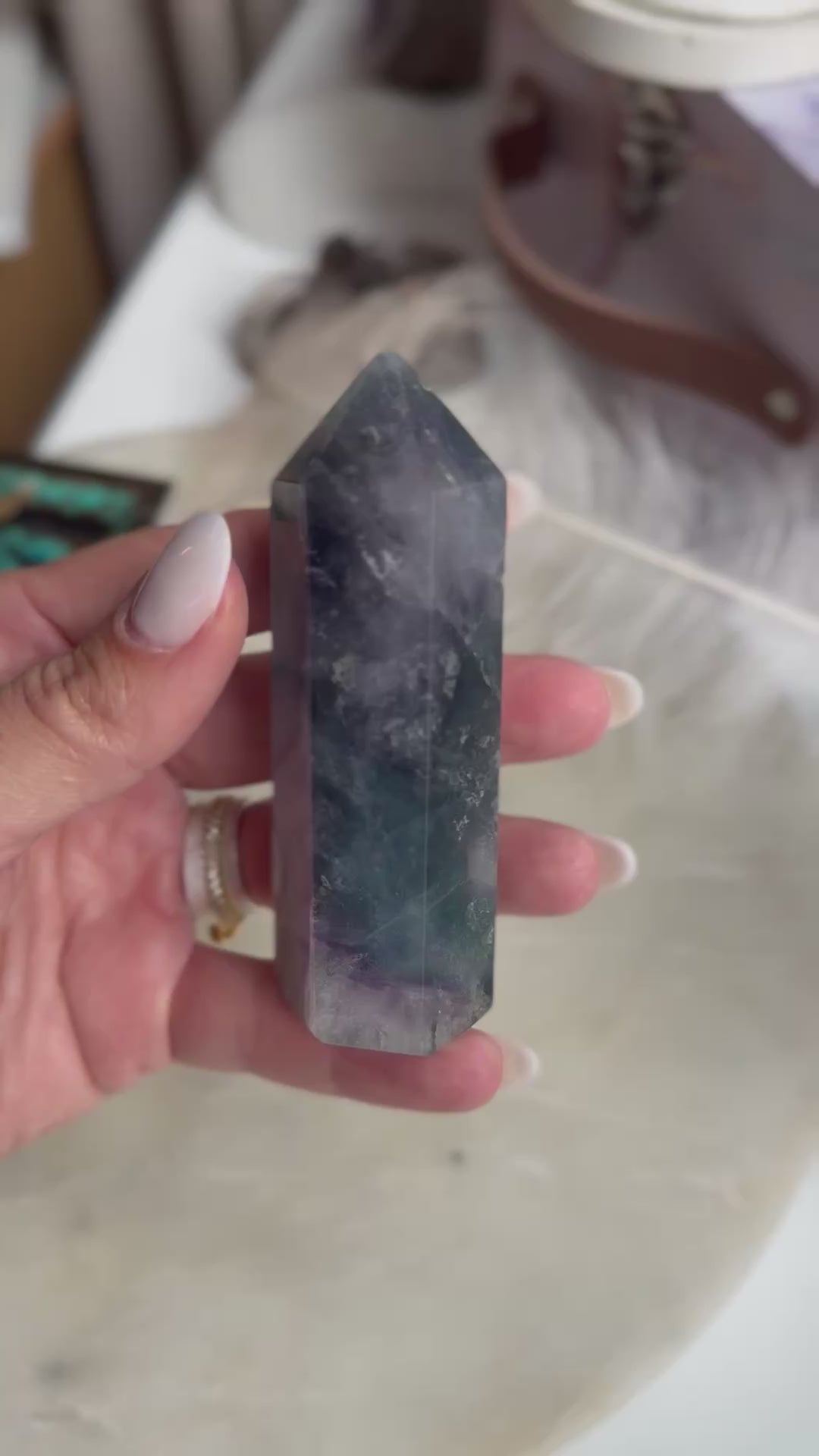 Vaivorykštinis Fluoritas - padeda susikoncentruoti, apsisaugoti nuo neigiamos įtakos, išgryninti savo tikslus. Padeda mokytis ir išlaikyti aštrų protą, pamatyti situacijas iš aukščiau, visą paveikslą, todėl tinka pasidėti šalia mokinantis ar darbo vietoje. Taip pat šis kristalas laikomas vienu galingiausių norint išvalyti, subalansuoti žmogaus auros lauką. Padeda nuo įtampos, nerimo, galvos skausmo.